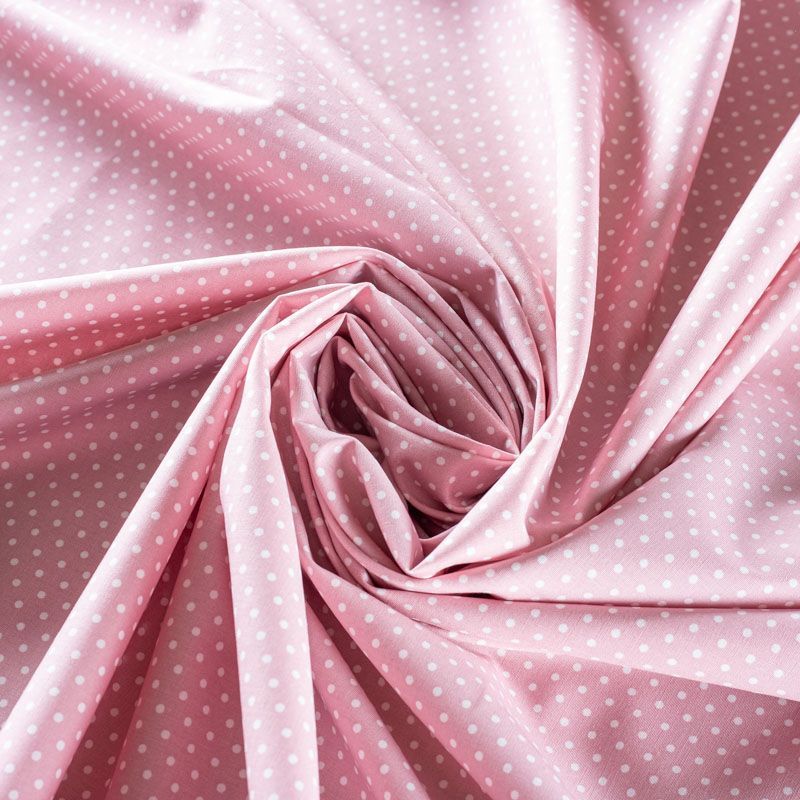 Плательно-блузочная ткань из натурального хлопка в мелкий горошек. Ткань легкая, тонкая, хорошо "дышит", мягкая, не прозрачная, немного тянется за счет эластана в составе. Подойдет для пошива летнего платья, летящей юбки, блузы, сарафана, комбинезона или рубашки.