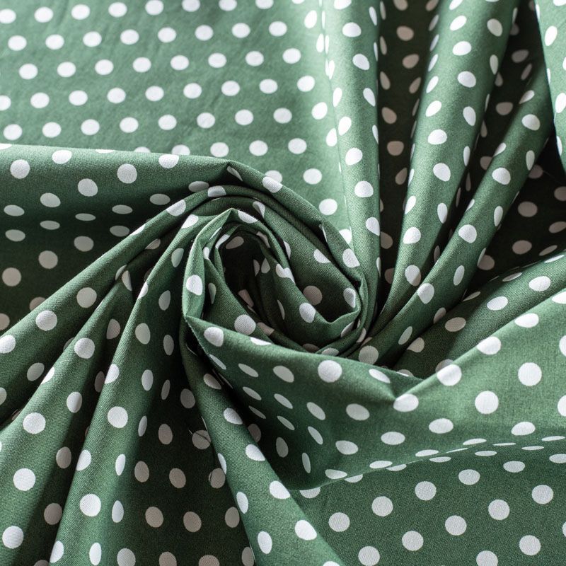 Плательно-блузочная ткань из натурального хлопка с принтом горох. Ткань легкая, тонкая, хорошо "дышит", мягкая, не прозрачная, немного тянется за счет эластана в составе. Подойдет для пошива летнего платья, летящей юбки, блузы, сарафана, комбинезона или рубашки.