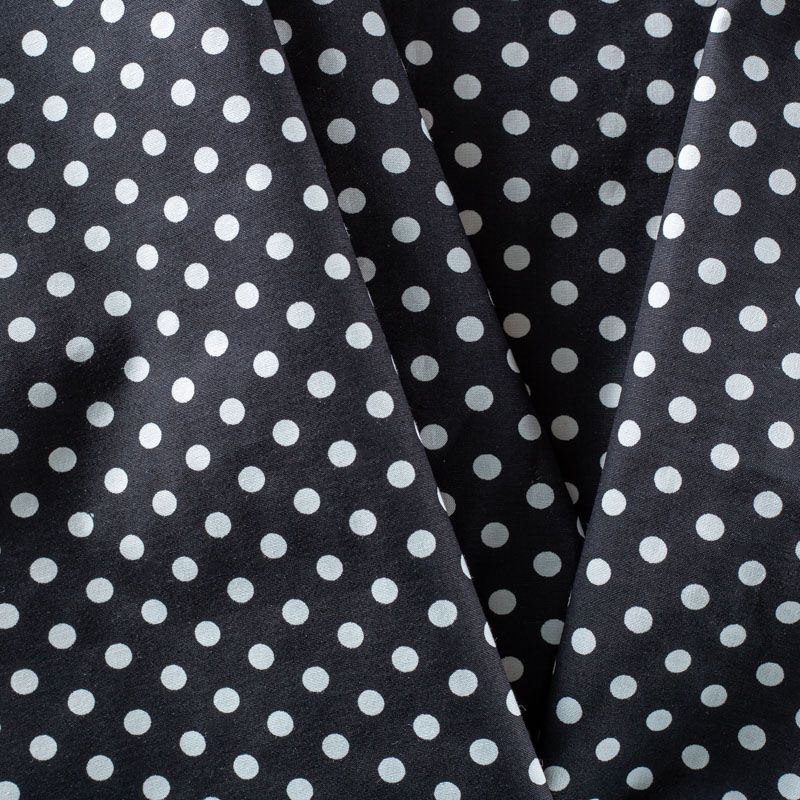 Плательно-блузочная ткань из натурального хлопка с принтом горох. Ткань легкая, тонкая, хорошо "дышит", мягкая, не прозрачная, немного тянется за счет эластана в составе. Подойдет для пошива летнего платья, летящей юбки, блузы, сарафана, комбинезона или рубашки.