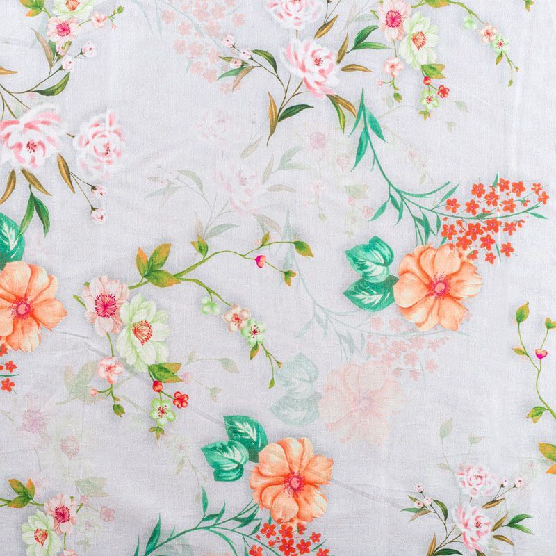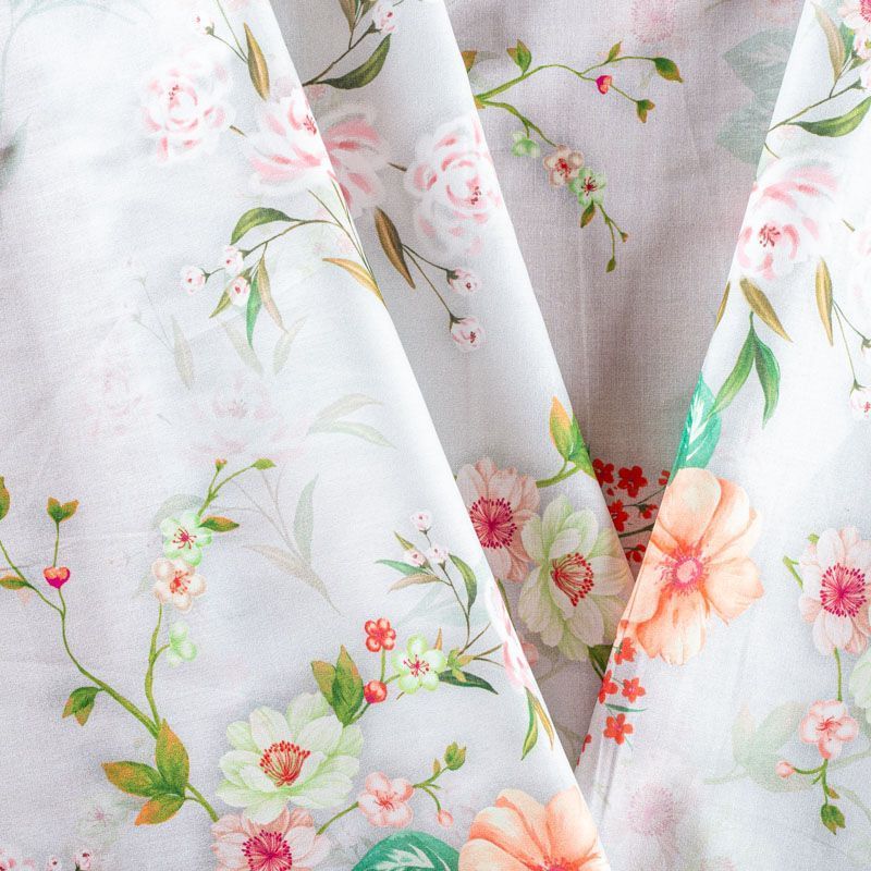 Плательно-рубашечный хлопок серого оттенка с элегантным цветочным принтом. Ткань очень лёгкая, воздушная, тонкая, похожа на батист, немного прозрачная, поверхность матовая, гладкая, приятная к телу, хорошо драпируется. Прекрасно подойдет блузы, платья-рубашки, летнего сарафана, туники.