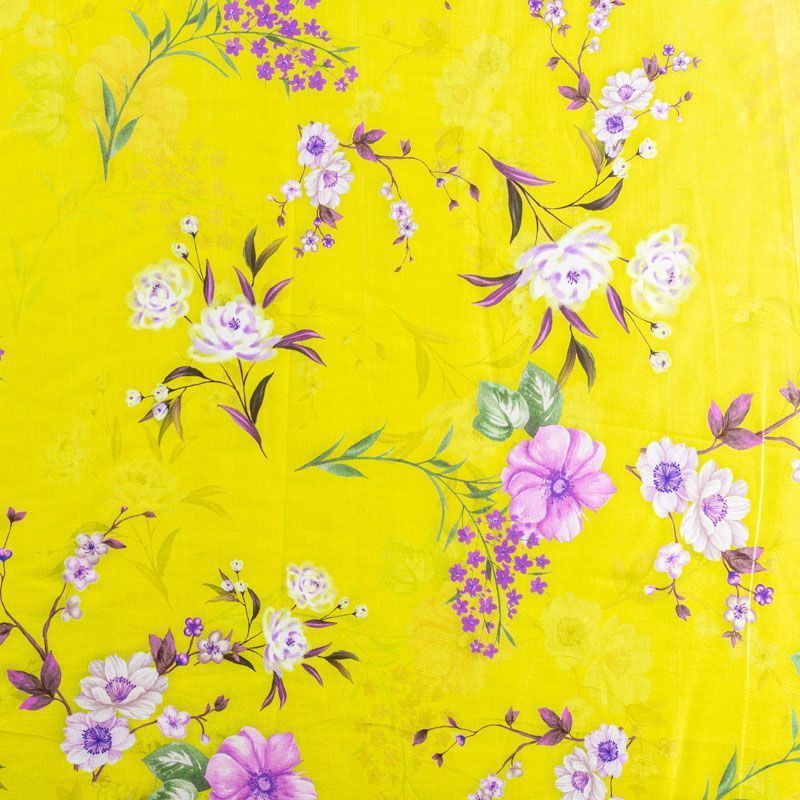 Плательно-рубашечный хлопок сложного красивого желтого оттенка с элегантным цветочным принтом. Ткань очень лёгкая, воздушная, тонкая, похожа на батист, немного прозрачная, поверхность матовая, гладкая, приятная к телу, хорошо драпируется. Прекрасно подойдет блузы, платья-рубашки, летнего сарафана, туники.