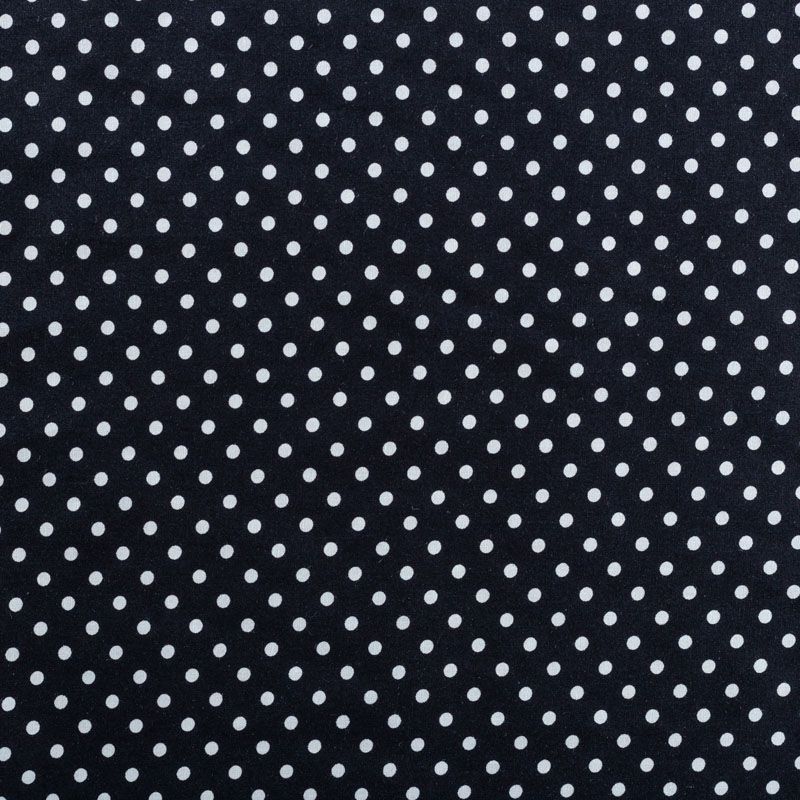 Плательно-блузочная ткань из натурального хлопка в белый горошек. Ткань легкая, тонкая, хорошо "дышит", мягкая, не прозрачная. Подойдет для пошива летнего платья, летящей юбки, блузы, сарафана, комбинезона или рубашки.