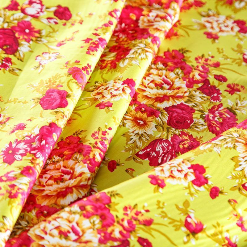 Плательно-рубашечная ткань из натурального хлопка с ярким цветочным принтом. Ткань легкая, тонкая, хорошо "дышит", слегка держит форму, не сухая, не прозрачная. Подойдет для пошива летнего платья, летящей юбки, блузы, сарафана, комбинезона или рубашки, а также для домашней одежды.