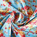 Плательно-рубашечная ткань из натурального хлопка с ярким цветочным принтом. Ткань легкая, тонкая, хорошо "дышит", слегка держит форму, не сухая, не прозрачная. Подойдет для пошива летнего платья, летящей юбки, блузы, сарафана, комбинезона или рубашки, а также для домашней одежды.