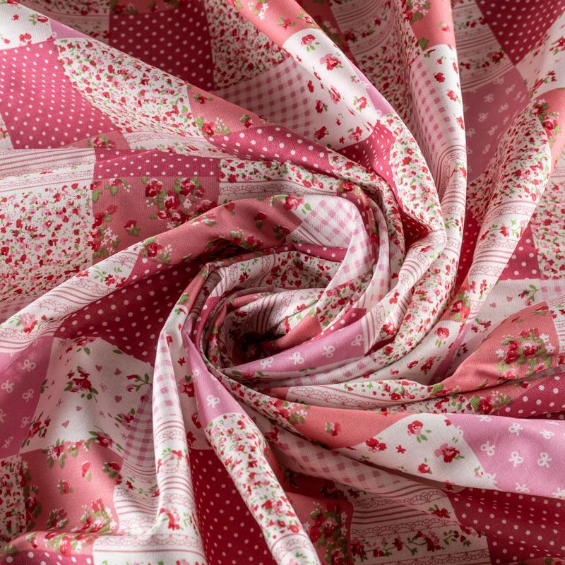 Ткань из натурального хлопка с рисунком в виде сшитых между собой разных лоскутков (печворк). Размер клетки 5*5 см. Ткань легкая, хорошо "дышит", мягкая, слегка прозрачная. Подойдет для пошива белья, рукоделия, печворка, изготовления предметов интерьера.
