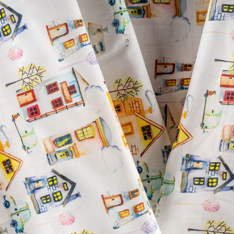 Итальянский натуральный хлопок с детским городским рисунком в пастельных тонах. Ткань легкая, тонкая, хорошо "дышит", мягкая, слегка прозрачная, по плотности напоминает батист. Подойдет для пошива домашней одежды, детских летних платьев, песочников, юбки, сарафана или рубашки, а также для для пошива постельных принадлежностей, подушек, покрывал, скрапбукинга, корзин и других видов творчества.