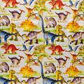 Итальянский натуральный хлопок с ярким принтом в виде милых динозавриков. Ткань легкая, тонкая, хорошо "дышит", мягкая, слегка прозрачная, по плотности напоминает батист. Подойдет для пошива домашней одежды, детских летних платьев, песочников, юбки, сарафана или рубашки, а также для для пошива постельных принадлежностей, подушек, покрывал, скрапбукинга, корзин и других видов творчества.