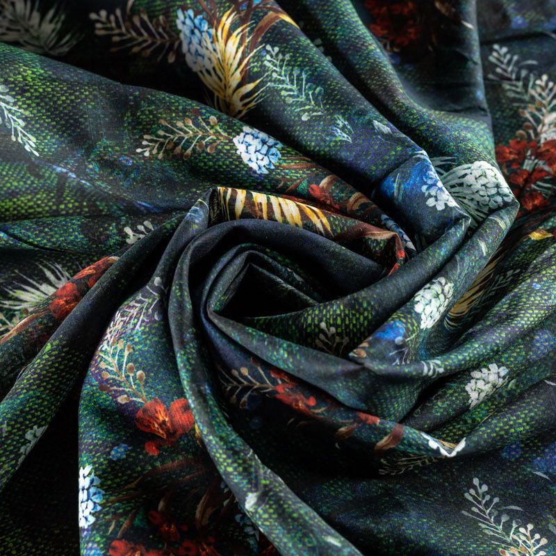Плательно-блузочная ткань из натурального хлопка с ярким растительным принтом на темно-зеленом фоне. Ткань легкая, тонкая, хорошо "дышит", мягкая, слегка прозрачная. Подойдет для пошива летнего платья, летящей юбки, блузы, сарафана или рубашки.
