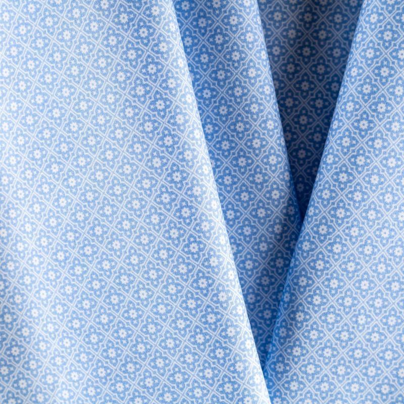 На голубом фоне мелкий геометрический узор белого цвета.