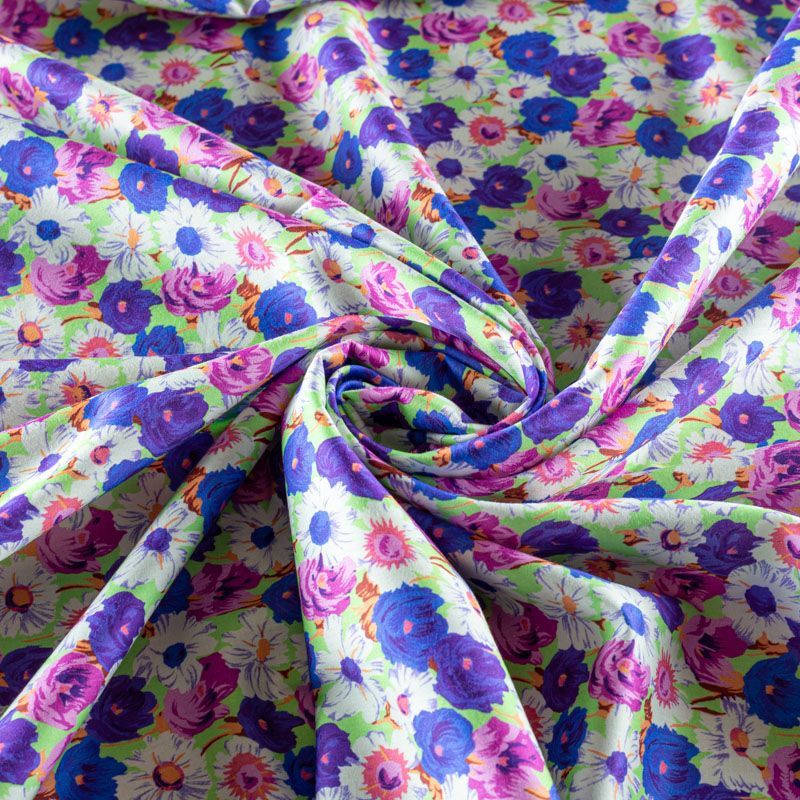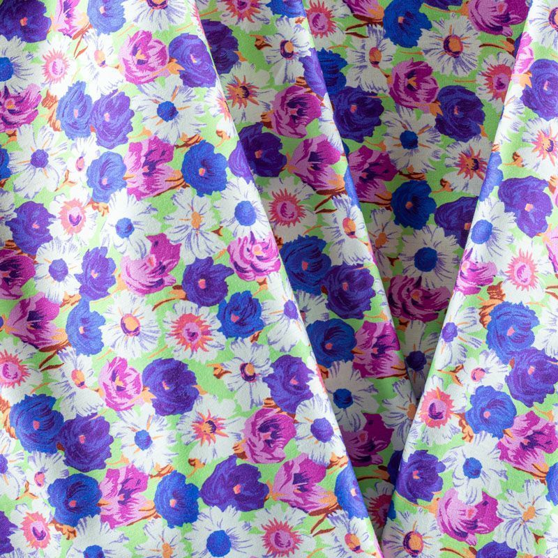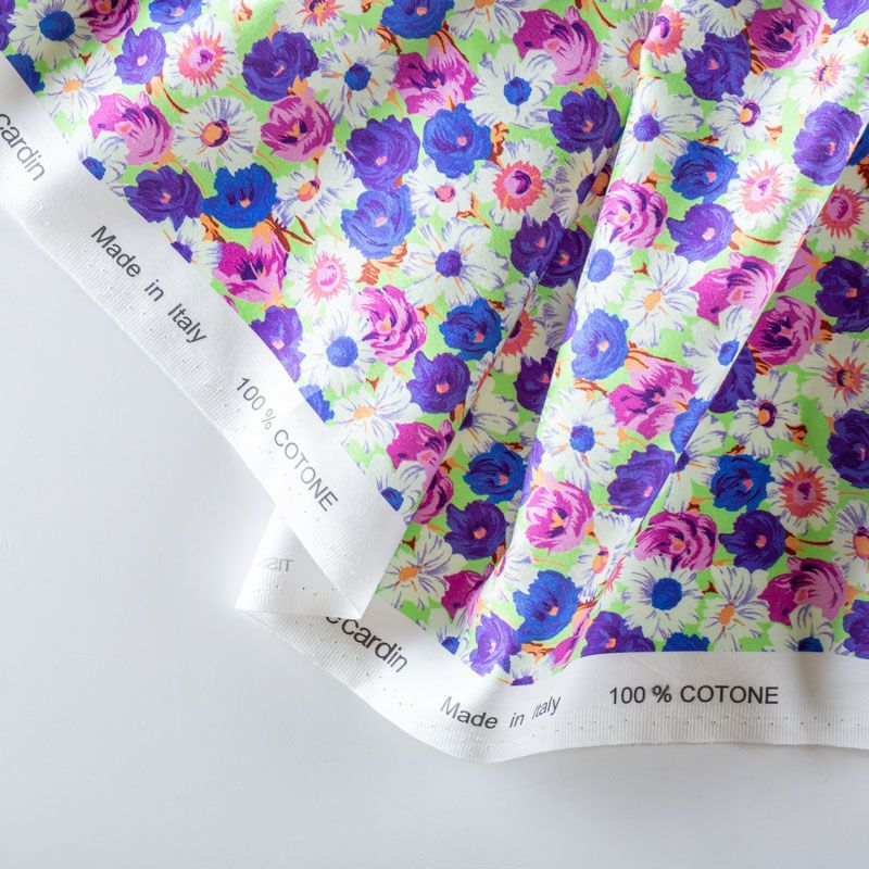 Плательно-рубашечный натуральный хлопок от французского дизайнера с цветочным узором в розовых и синих тонах на салатовом фоне. Ткань имеет плотное переплетение, матовую гладкую поверхность, хорошо держит форму, не прозрачная. Подойдет для пошива рубашек, платья-рубашки, юбки, сарафана, туники, домашней одежды.