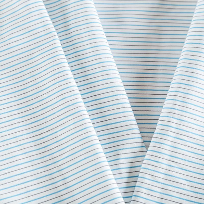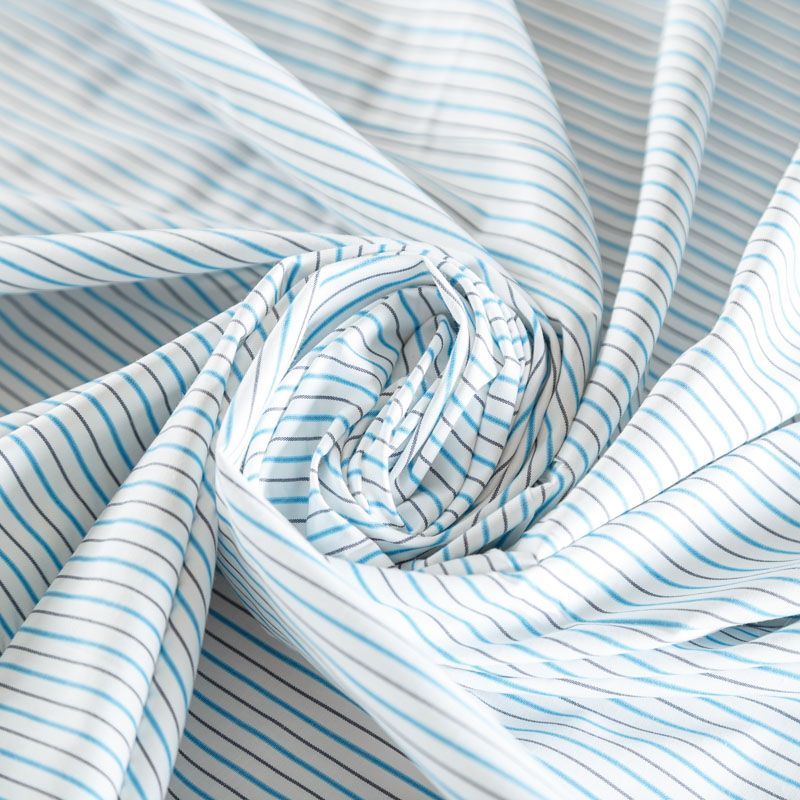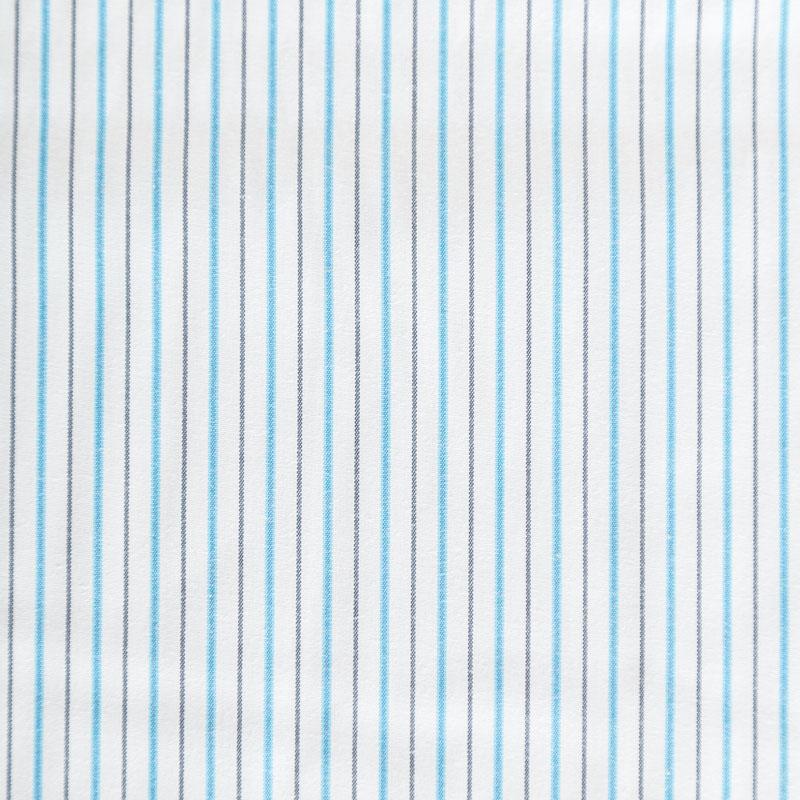 Плательно-рубашечный хлопок в белого цвета освежает тонкая серая и голубая полоска. Ткань мягкая, лёгкая, непрозрачная, пластичная и приятная к телу, хорошо драпируется, имеет гладкую матовую поверхность и сатиновое плетение. Прекрасно подойдет как для пошива платья-рубашки, сарафана, платьев различных фасонов, туники, топа, летнего костюма, комбинезона, мужкой и детской одежды.