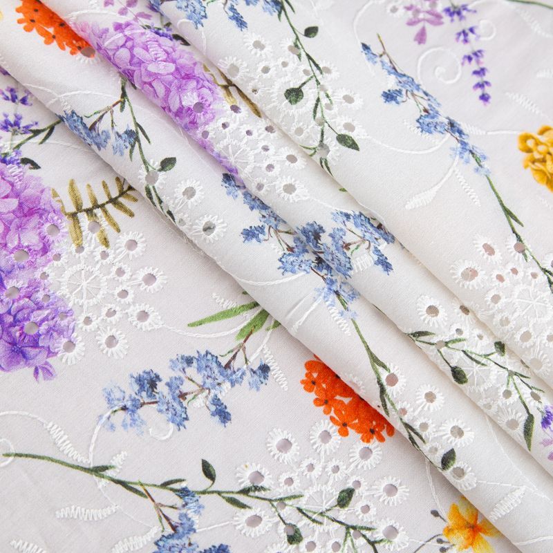 Хлопок с вышивкой 067-20129 белый принтованный в Ухте