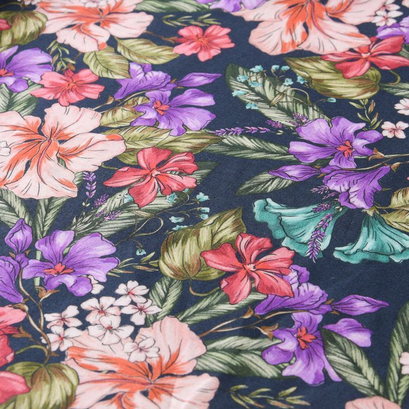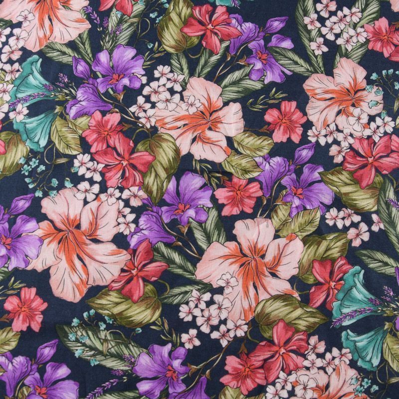 Хлопок стрейч 063-12074 темно-синий принтованный в Ухте