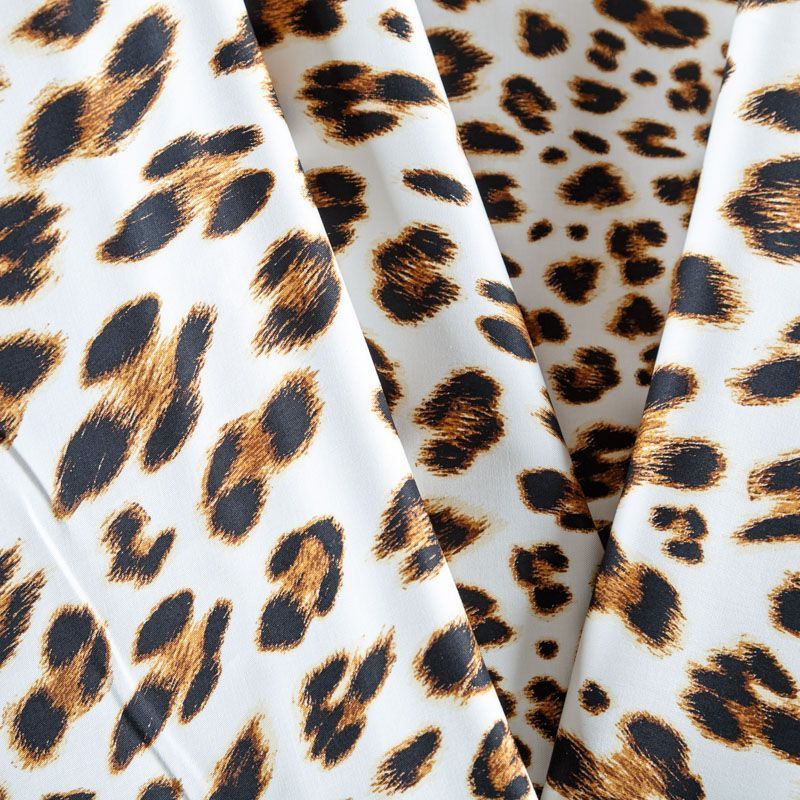 Итальянский коттон белого цвета с анималистическим принтом в природных оттенках. Поверхность гладкая, матовая, ткань средней плотности,  не толстая, хорошо держит форму, тянется за счет эластана в составе. Подойдет для пошива костюма, жакета, юбки, платья, брюк или шорт.