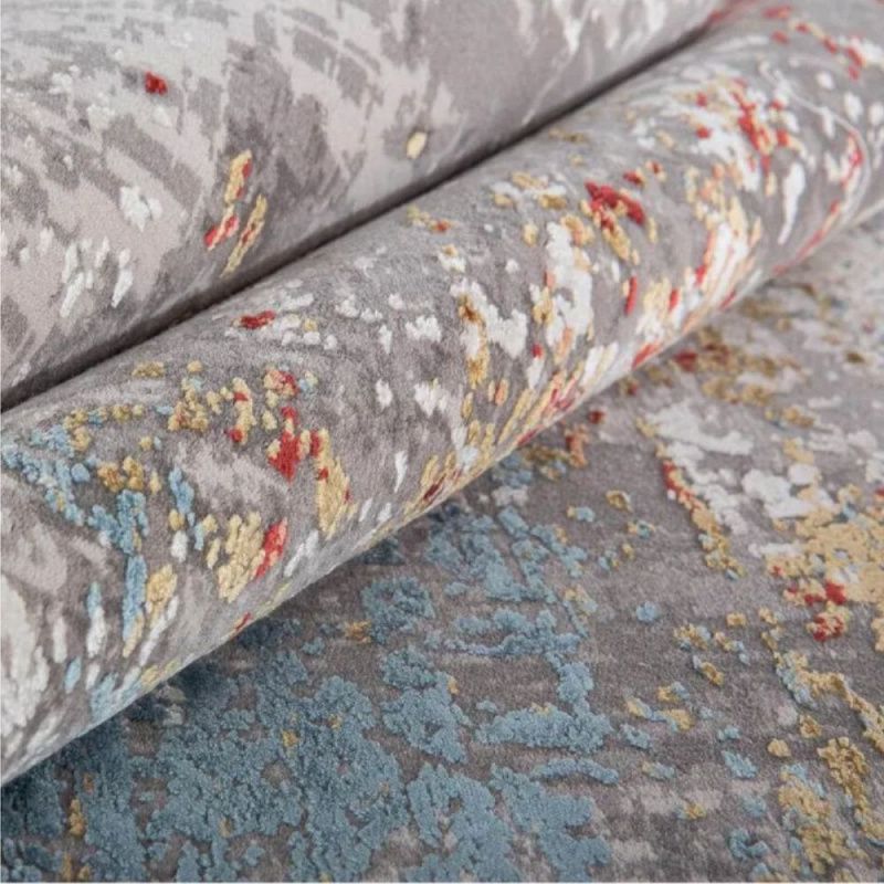Ковер выполнен в актуальном абстрактном дизайне и свежих оттенках, которые сделают пространство визуально более лёгким. Ковер отличается мягкостью и гладкостью, но значительно прочный и износостойкий. Ворс хорошо удерживает тепло в холодную погоду, а в жару сохраняет приятную прохладу. Рекомендуется чистить ковер вручную, что придаёт ему дополнительную гладкость и лоск. Плотность  – 2000000 пробивок на м2.