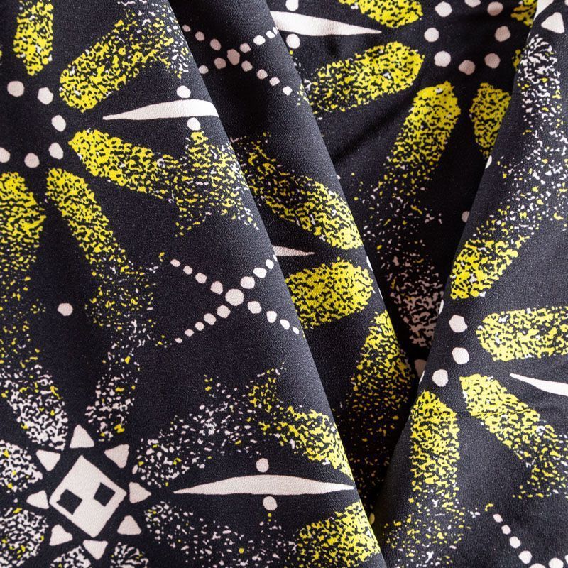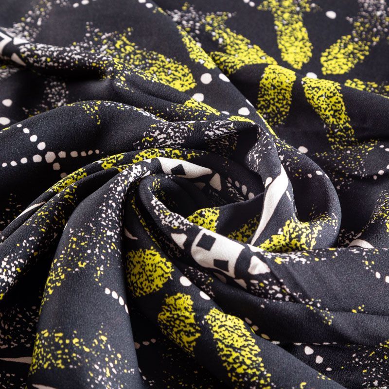 Итальянский вискозный креп плательной плотности с абстрактным контрастным принтом. Поверхность матовая и фактурная, ткань малосминаемая, красиво драпируется, струится и дает объемную складку, не просвечивает.Идеально подойдет для шикарного платья, блузы, юбки, комбинезона, брюк свободного кроя.
