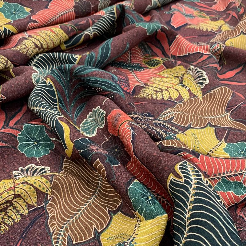 Креп 026-11729 бордово-коричневый принтованный в Ухте