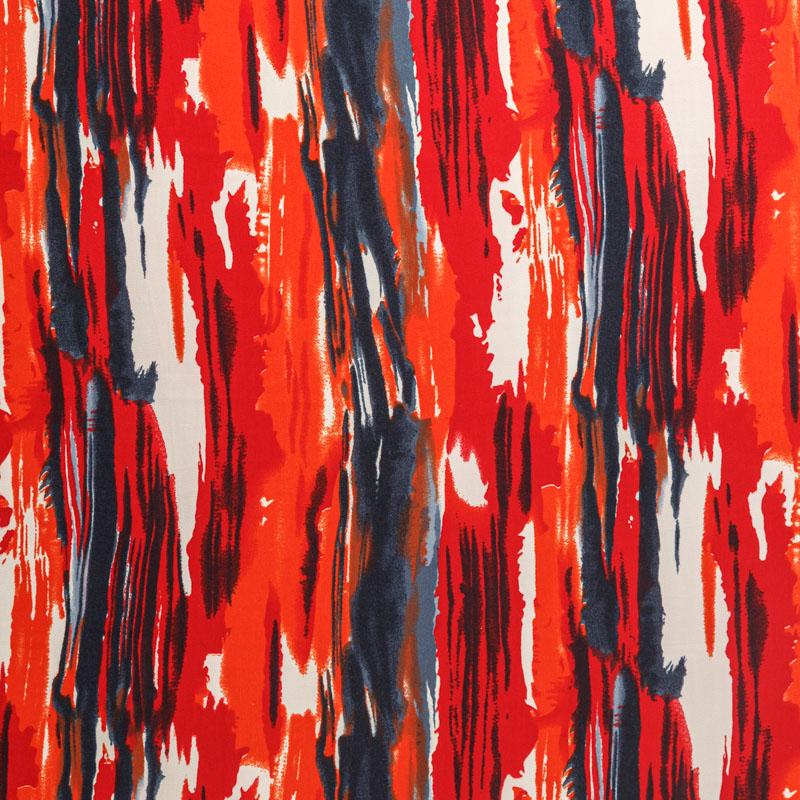 Плательный креп с абстрактным принтом. Ткань средней плотности, не толстая, пластичная, поверхность полотна матовая, с характерной мелкозернистой фактурой, прочная, практически не мнется, хорошо драпируется. Превосходно подойдет для пошива стильного костюма, юбки, платья, комбинезона, топа, брюк.