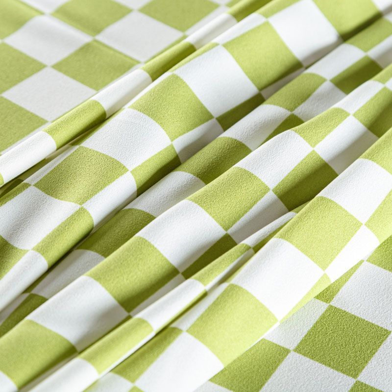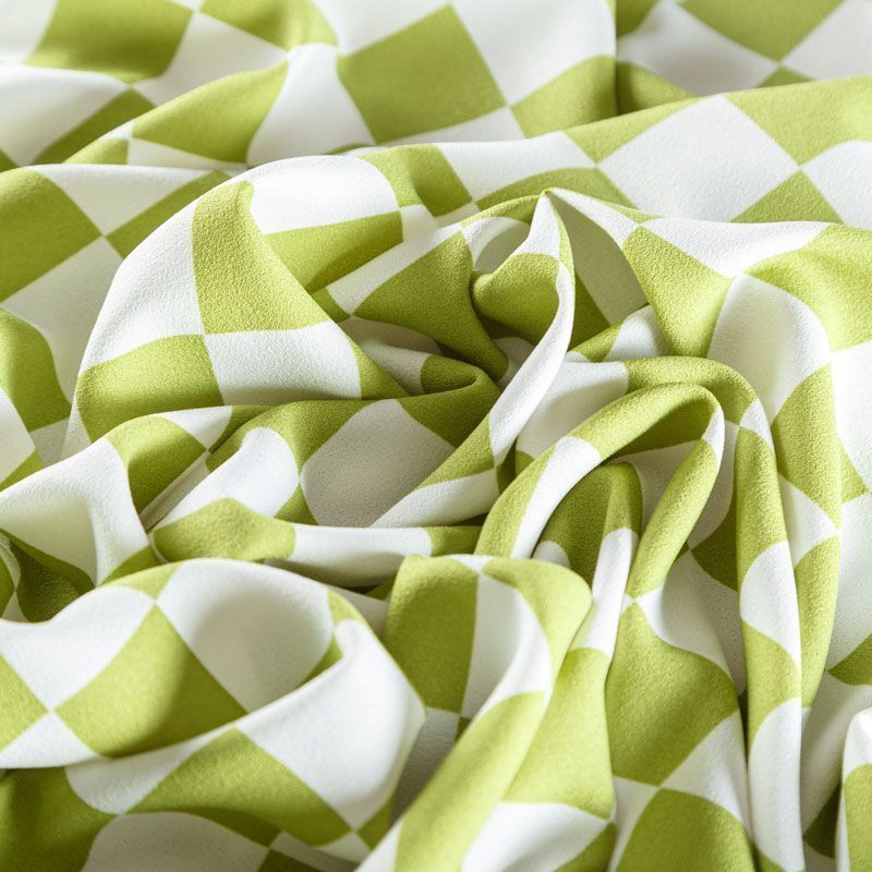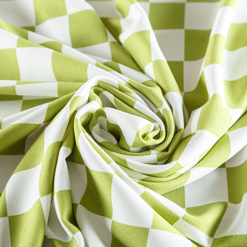 Плательный креп с геометрическим принтом. Ткань средней плотности, не толстая, пластичная, поверхность полотна матовая, с характерной мелкозернистой фактурой, прочная, практически не мнется, хорошо драпируется. Превосходно подойдет для пошива стильного костюма, юбки, платья, комбинезона, топа, брюк.