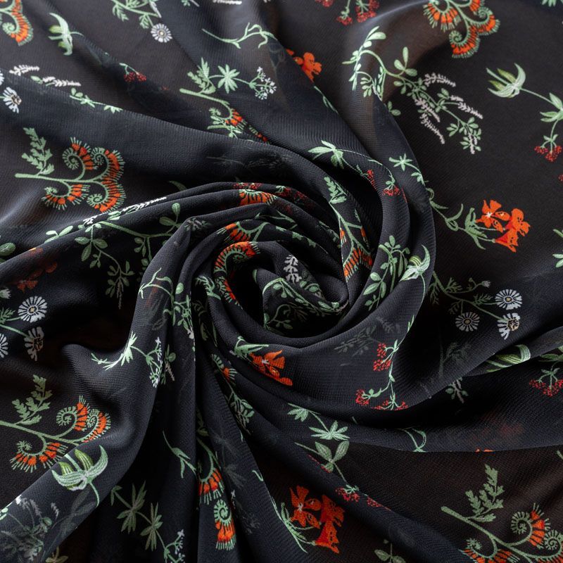 Креп-шифон 027-01276 черный принтованный в Ухте