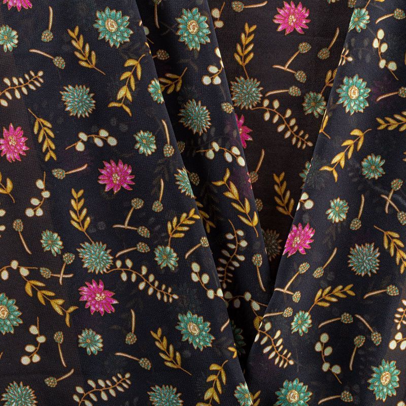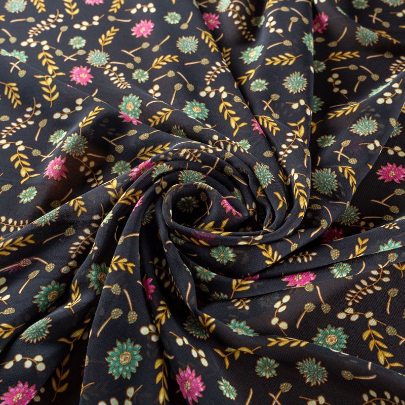 Креп-шифон 027-01282 темно-синий принтованный в Ухте
