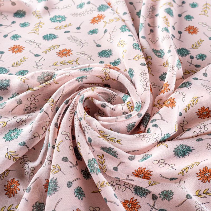 Креп-шифон 027-01284 пудрово-розовый принтованный