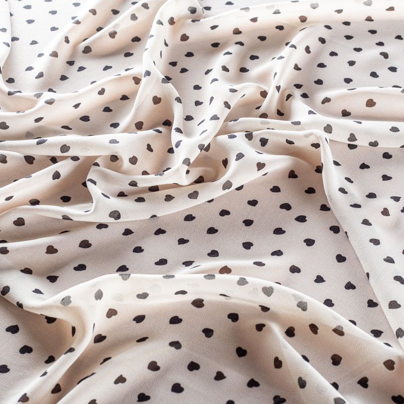 Легкий, воздушный, мягкий и нежный креп-шифон, прекрасно драпируется, тянется, приятен к телу, полупрозрачный, может потребоваться подклад. Поверхность матовая, без блеска, фактурная. Идеален для нежных платьев летящих силуэтов, топов, туник, блузок, юбок с роскошными драпировками и воланами.