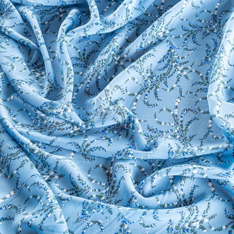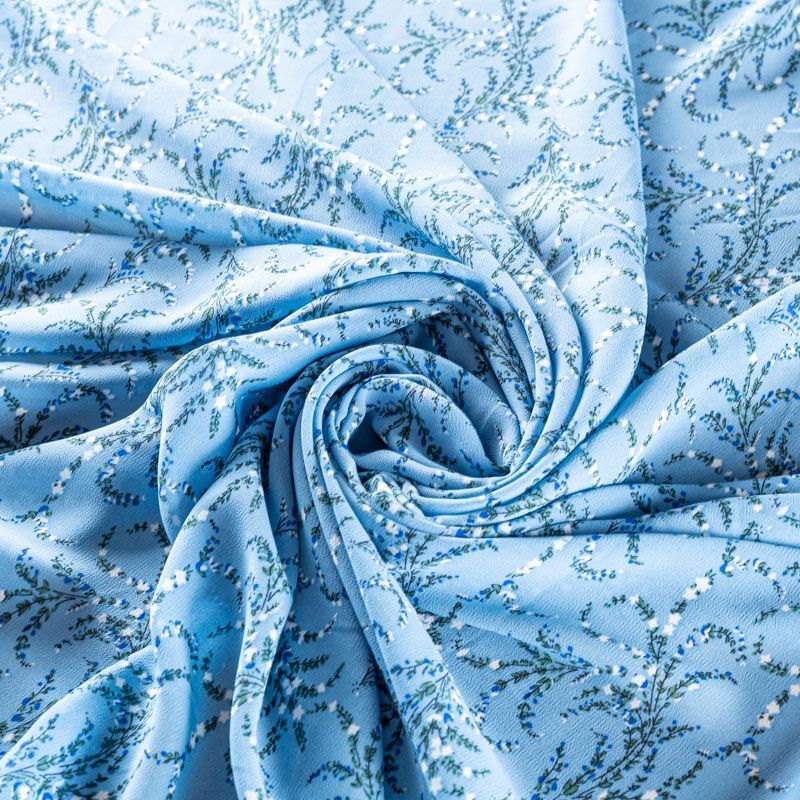 Креп-шифон 027-01444 голубой принтованный в Ухте