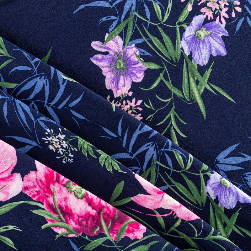 Креп-шифон 027-01569 темно-синий принтованный в Ухте
