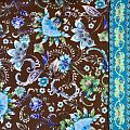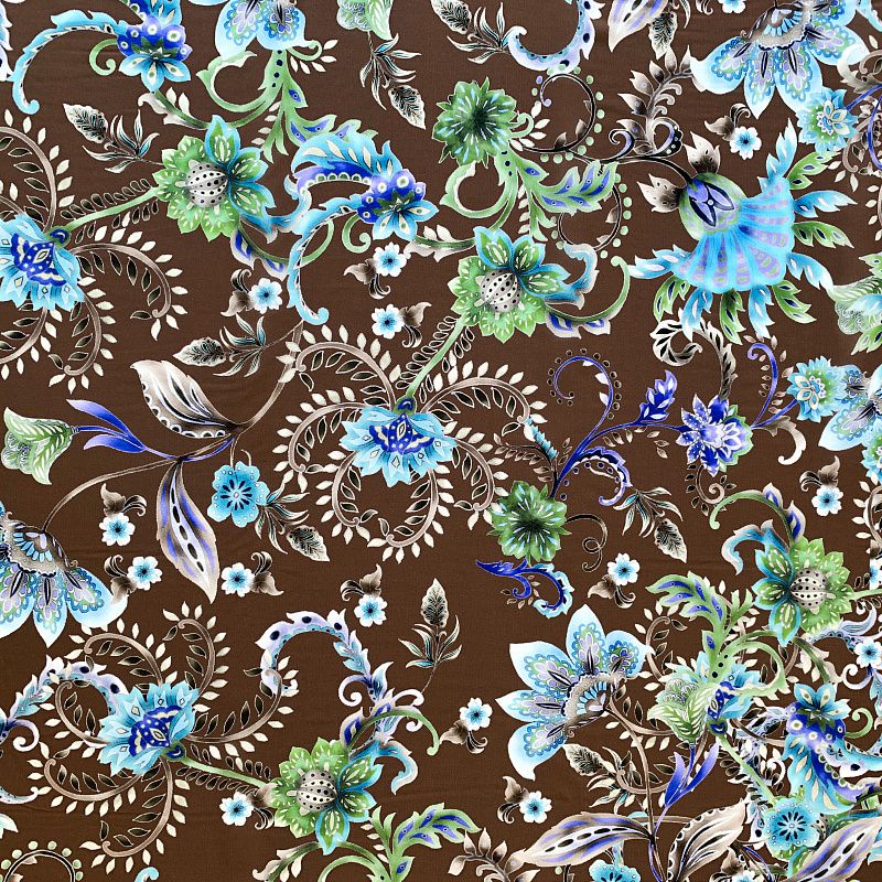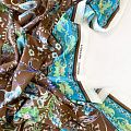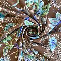 Креп-шифон натуральный К32-229 шоколадно-бирюзовый принтованный
