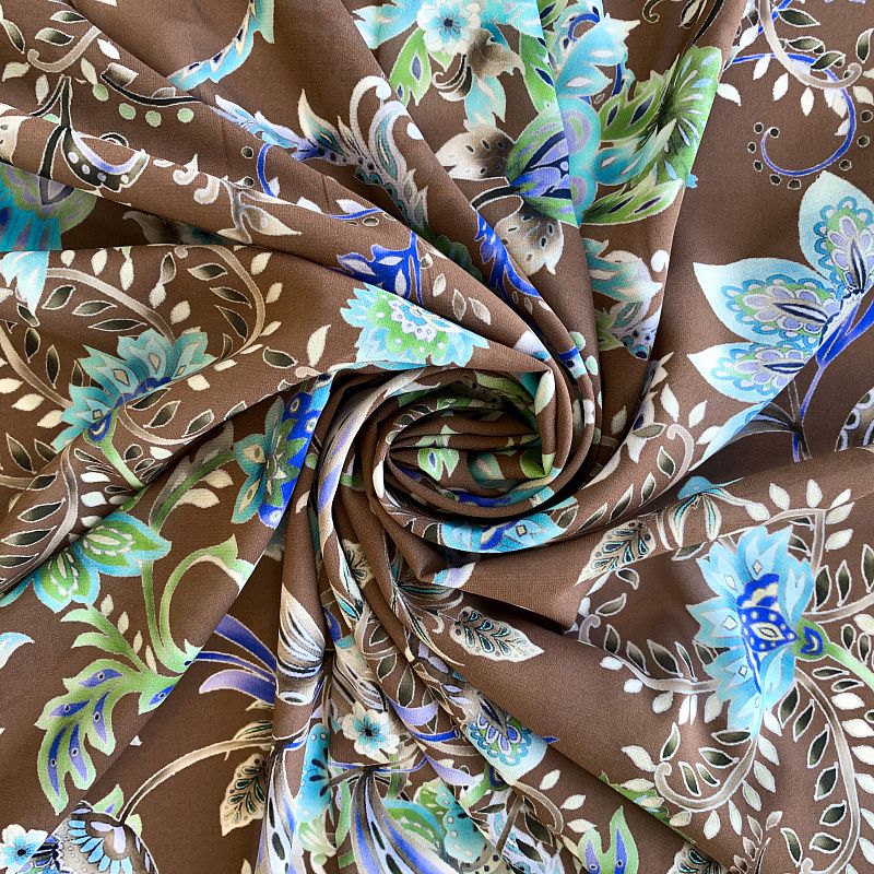 Креп-шифон натуральный К32-229 шоколадно-бирюзовый принтованный в Ухте