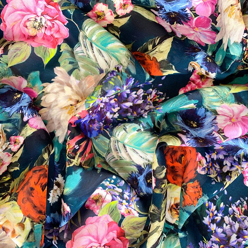 Креп-шифон натуральный К32-230 сине-зеленый принтованный в Ухте