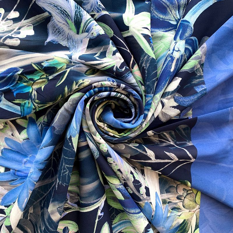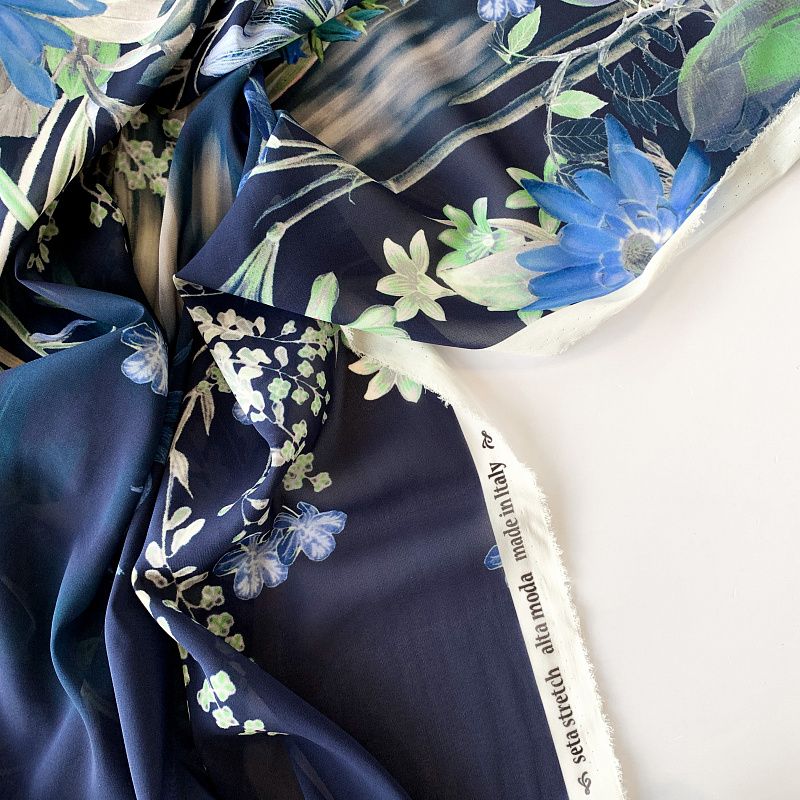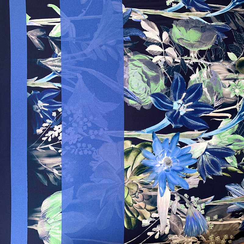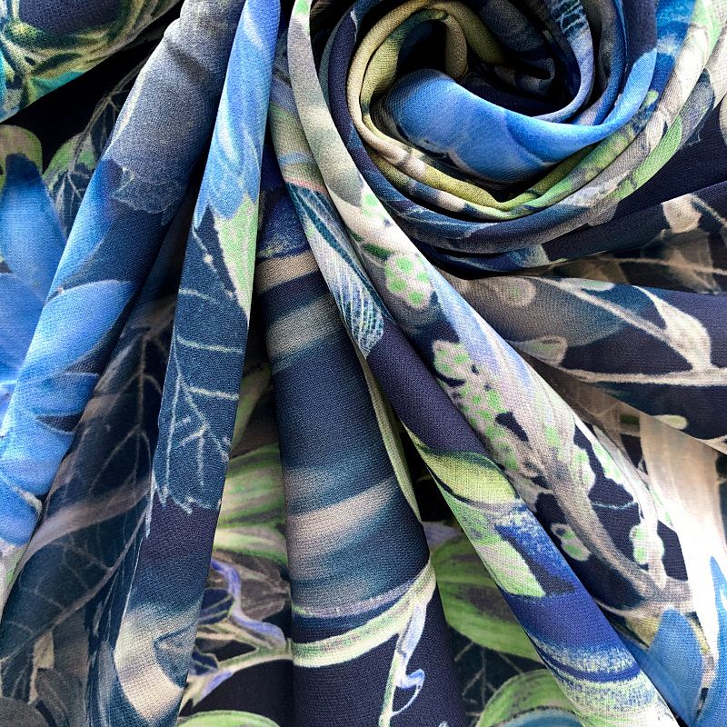 Креп-шифон натуральный К32-375 темно-синий принтованный в Ухте