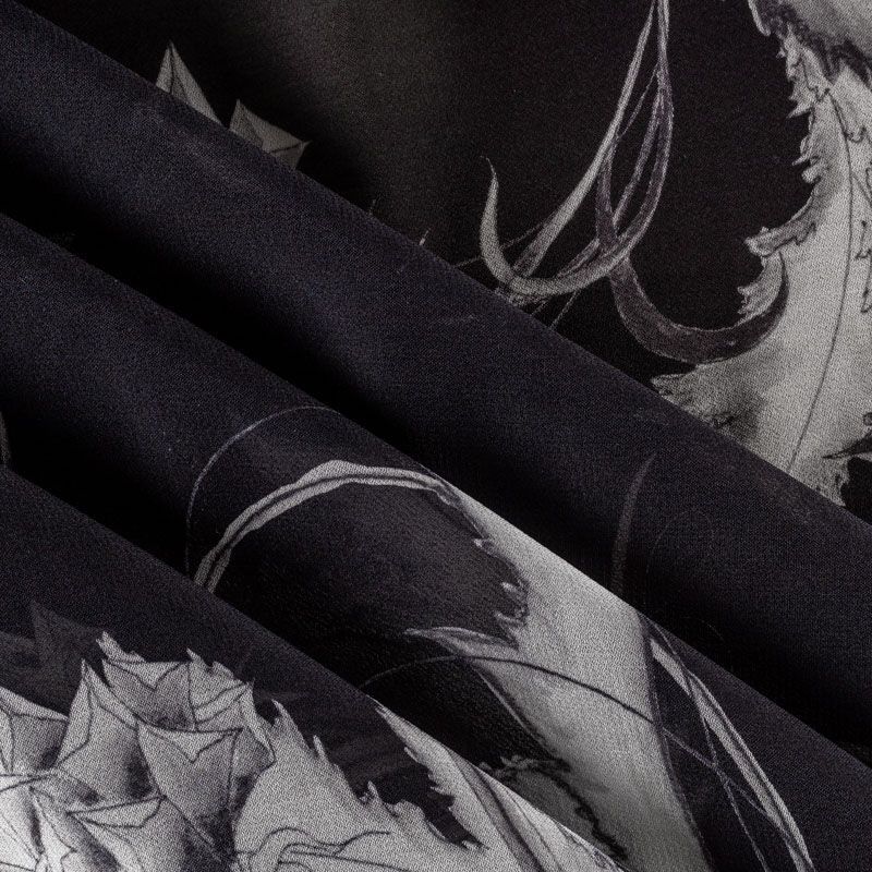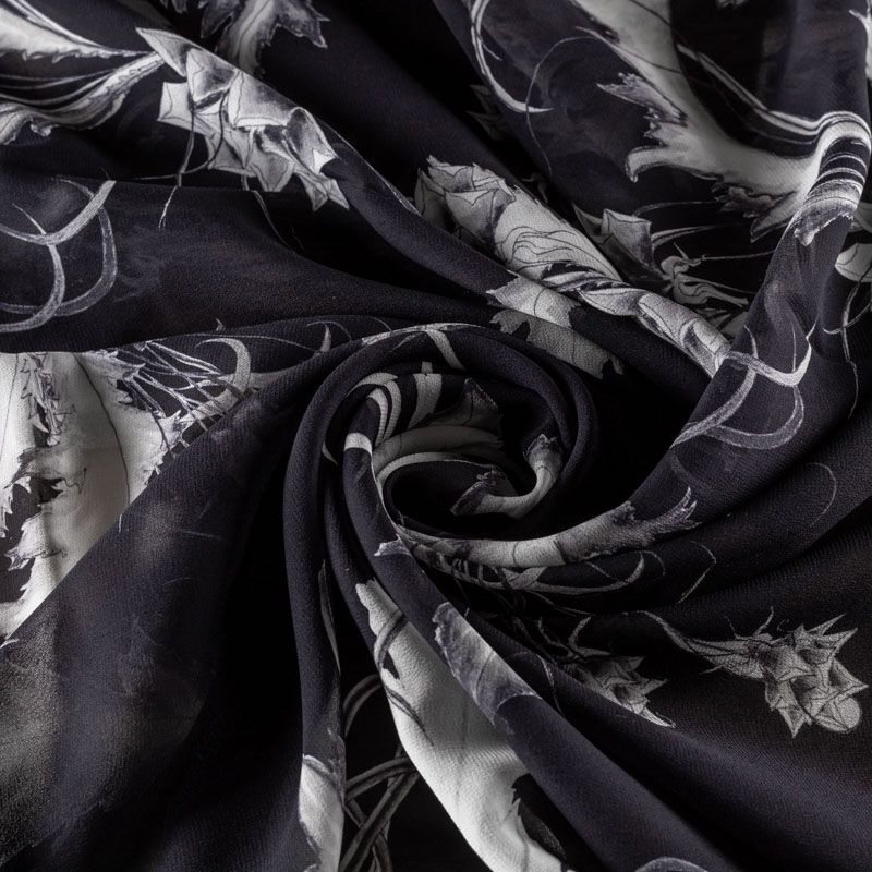 Креп-шифон натуральный К36-066 черный принтованный в Ухте