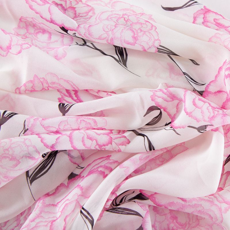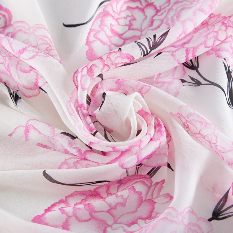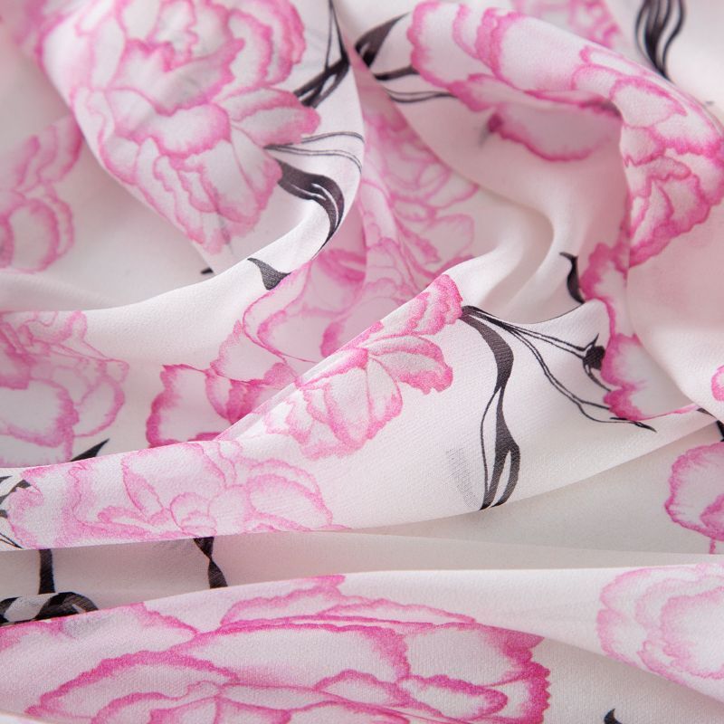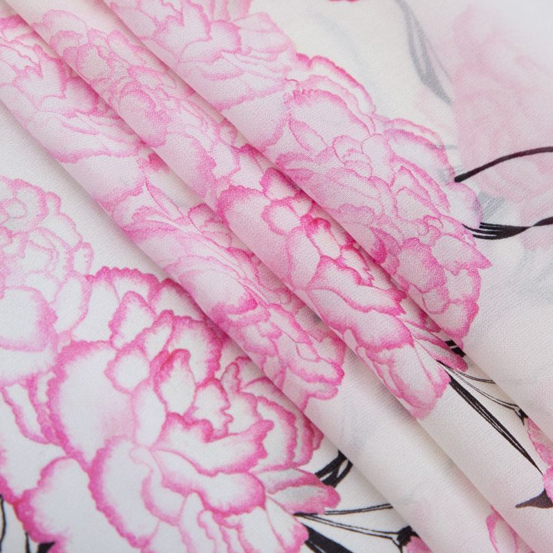 Креп-шифон шелковый 027-20200 молочный принтованный в Ухте