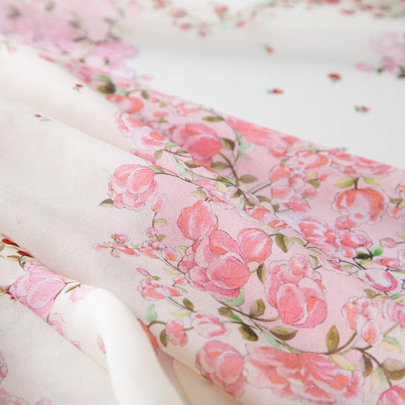 Креп-шифон шелковый 027-20215 молочный принтованный в Ухте