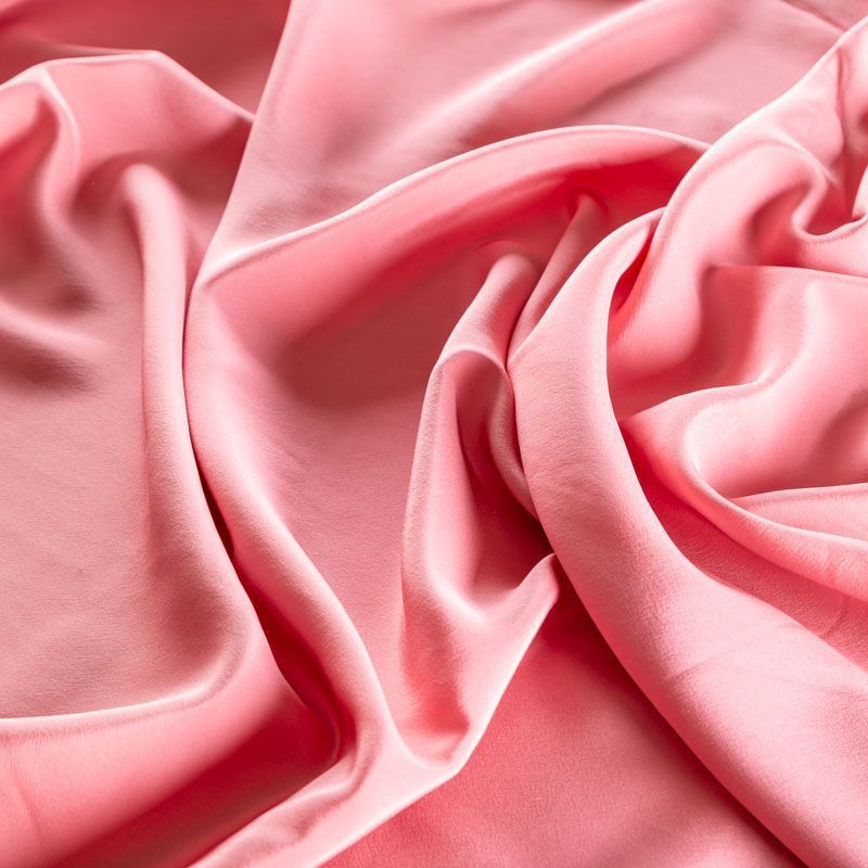 Натуральный шелковый крепдешин розового цвета с коралловым  оттенком. Ткань имеет матовую поверхность, легкая, тонкая, струящаяся, хорошо драпируется. Будет идеальна для пошива летнего сарафана, платья, блузки, костюма в пижамном стиле, широких брюк или юбки.