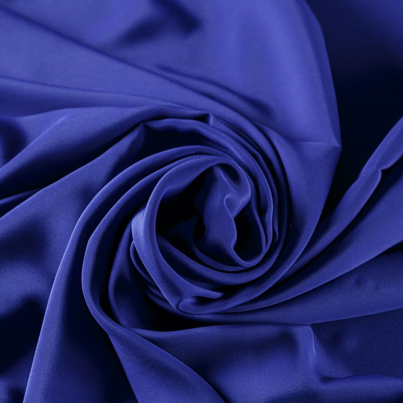 Шелковый крепдешин в синем оттенке с фиолетовым подтоном, тонкий, легкий, фактурный, приятный на ощупь, тянется за счет эластана в составе. Ткань слегка просвечивает, можно использовать подклад. Прекрасно будет смотреться в платье, юбке, тунике, рубашке или блузке.