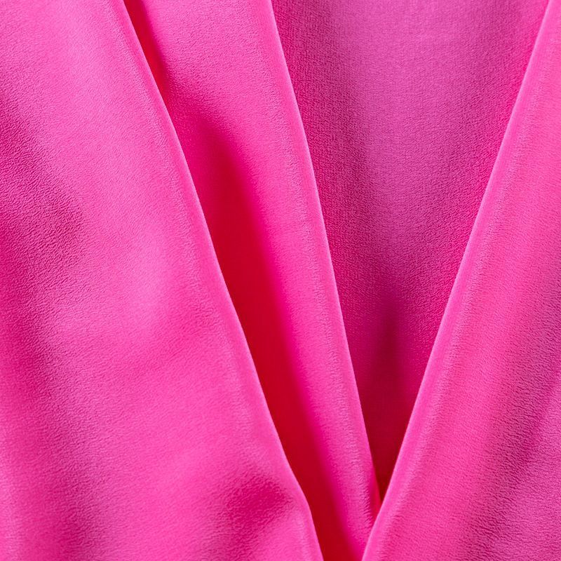 Итальянский натуральный шелковый крепдешин в ярком розовом оттенке, фактурный, легкий и струящийся, слегка просвечивает, отлично драпируется. Идеально подойдет для пошива платьев и сарафанов расклешенных моделей, с воланами, летящих юбок, топов, блузки, юбки, широких брюк, костюма в пижамном стиле.