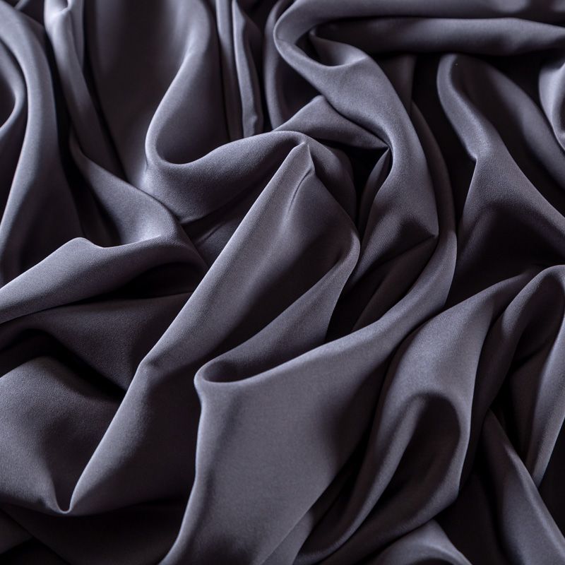 Итальянский натуральный шелковый крепдешин в сером оттенке, фактурный, легкий и струящийся, слегка просвечивает, отлично драпируется. Идеально подойдет для пошива платьев и сарафанов расклешенных моделей, с воланами, летящих юбок, топов, блузки, юбки, широких брюк, костюма в пижамном стиле.