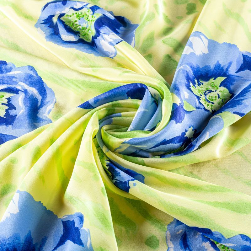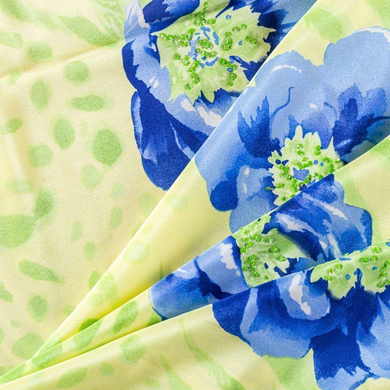 Крепдешин натуральный К01-651 салатовый принтованный в Ухте