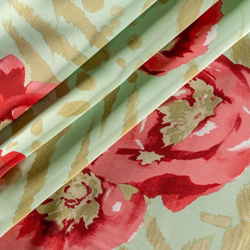 Крепдешин натуральный К01-653 фисташковый принтованный в Ухте