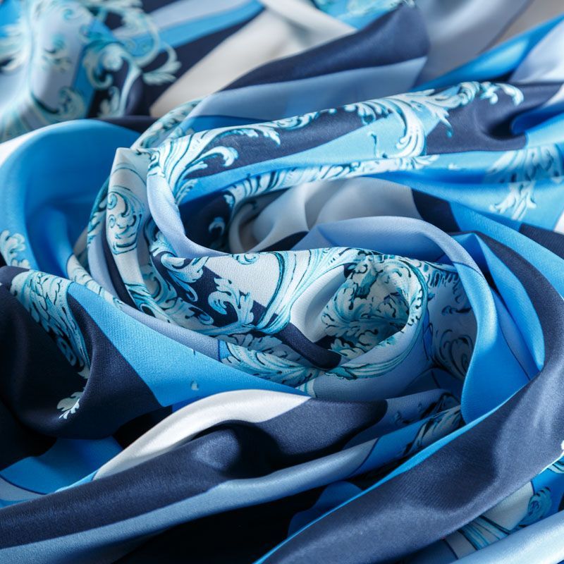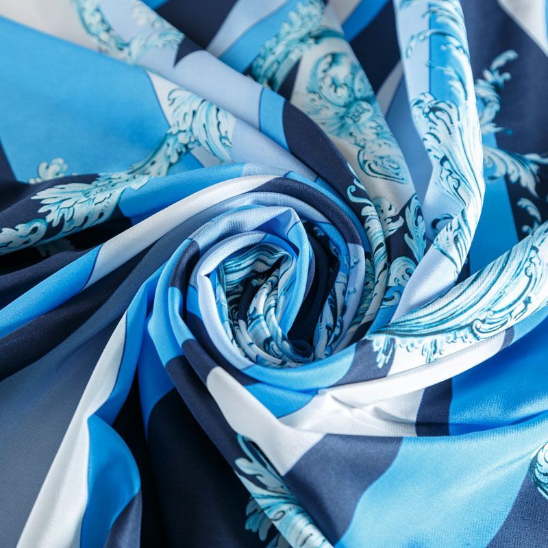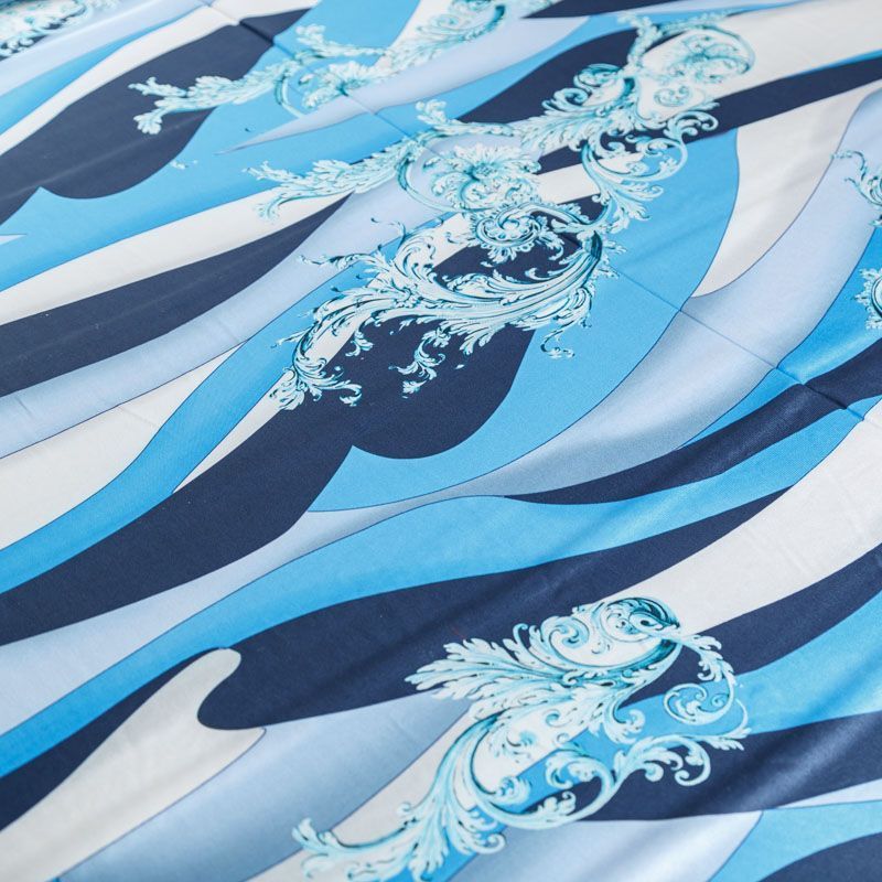 Крепдешин натуральный К01-762 серо-голубой принтованный в Ухте