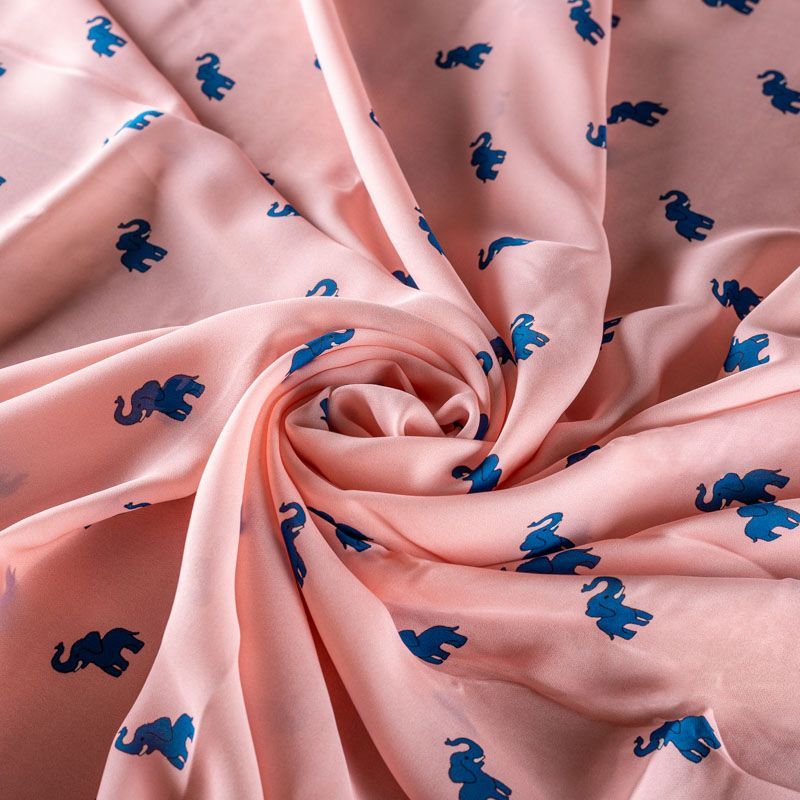Крепдешин натуральный К14-056 персиково-розовый принтованный в Ухте