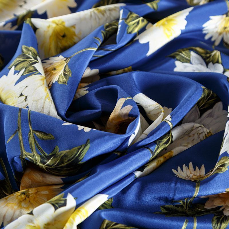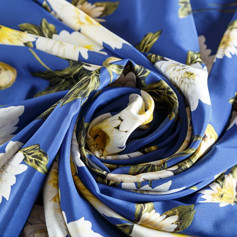 Крепдешин натуральный К15-003 синий принтованный в Ухте