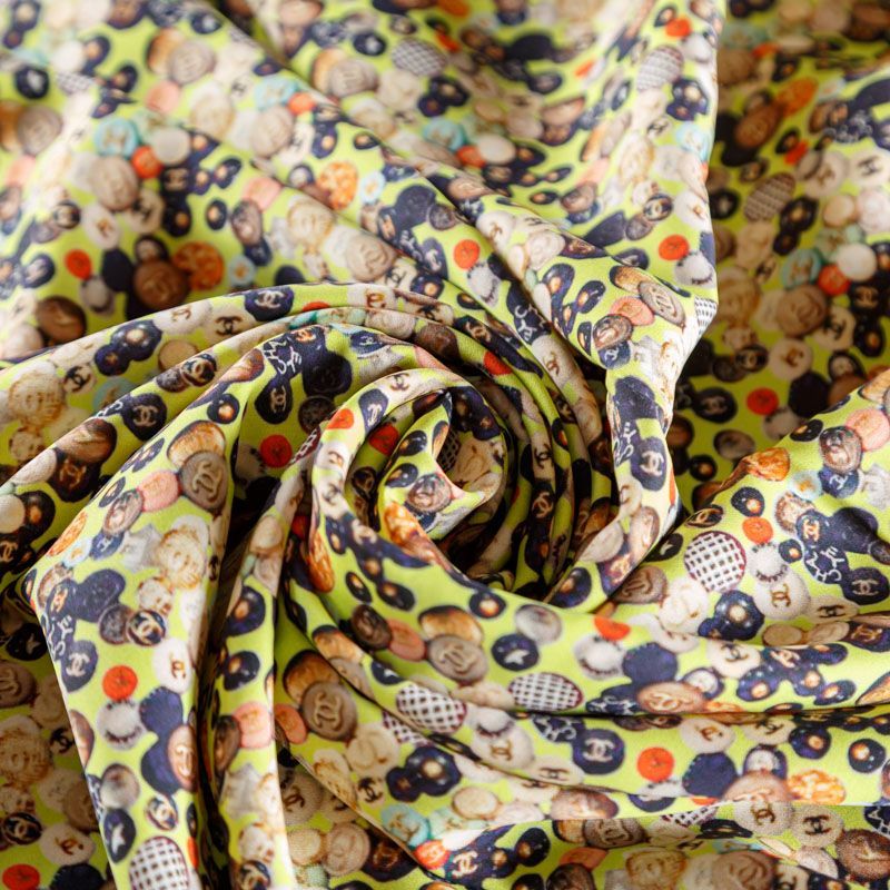 Крепдешин натуральный К18-074 желтый принтованный в Ухте