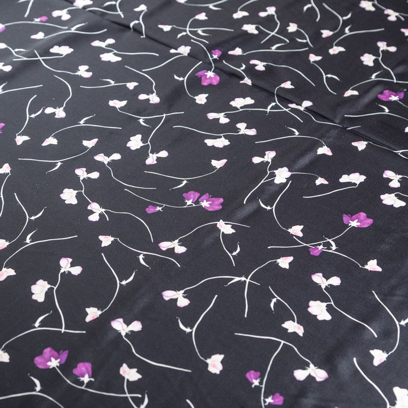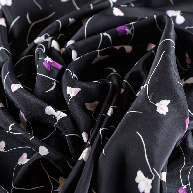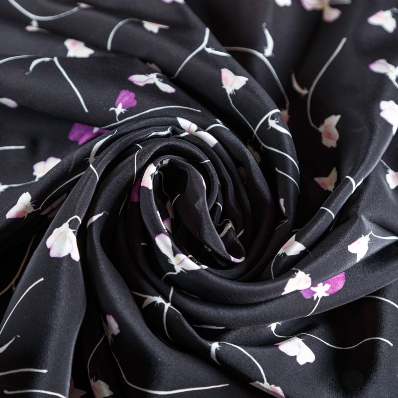 Крепдешин натуральный К24-034 черный принтованный в Ухте