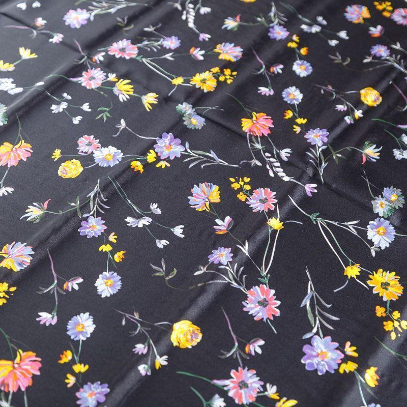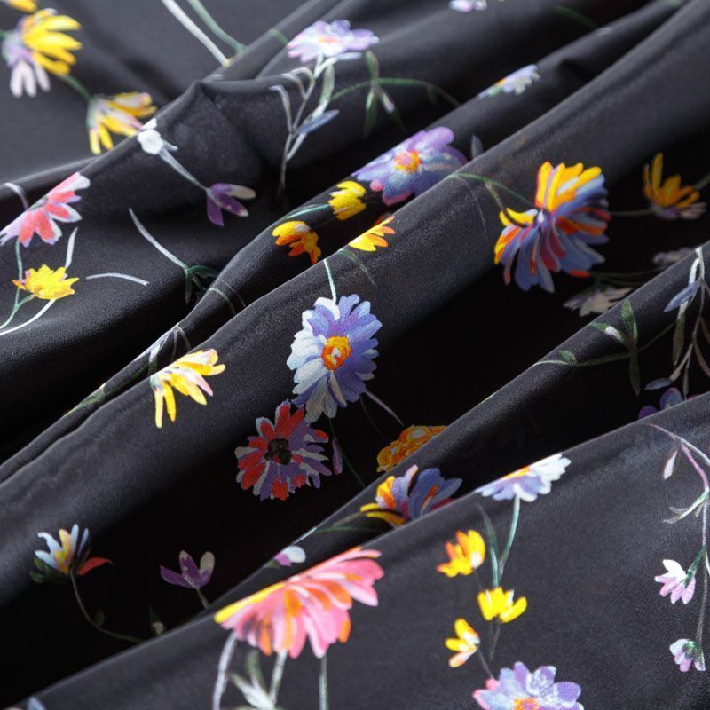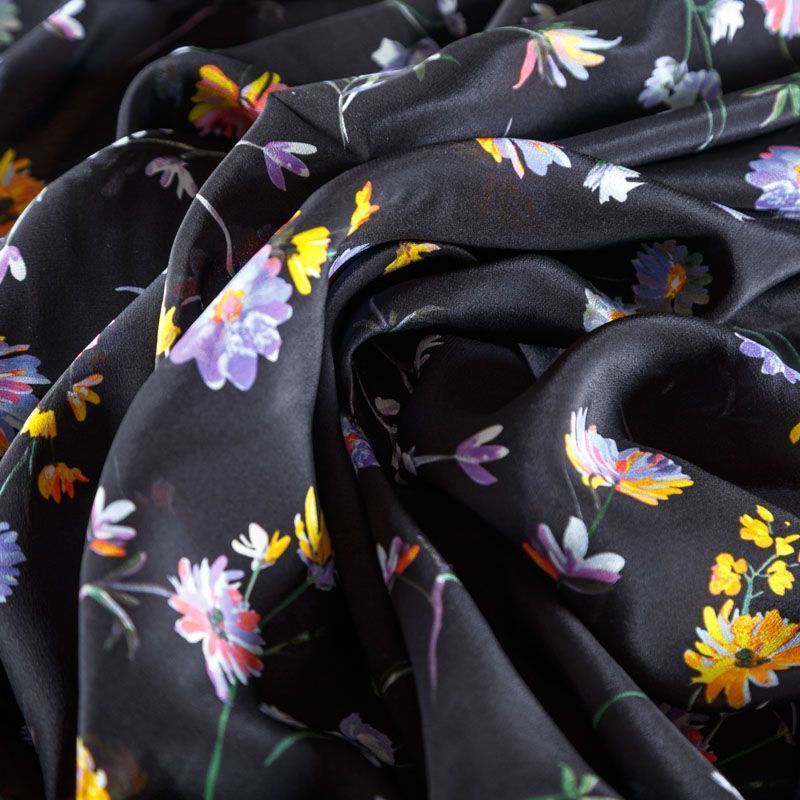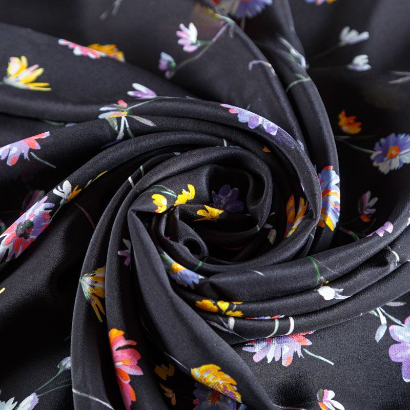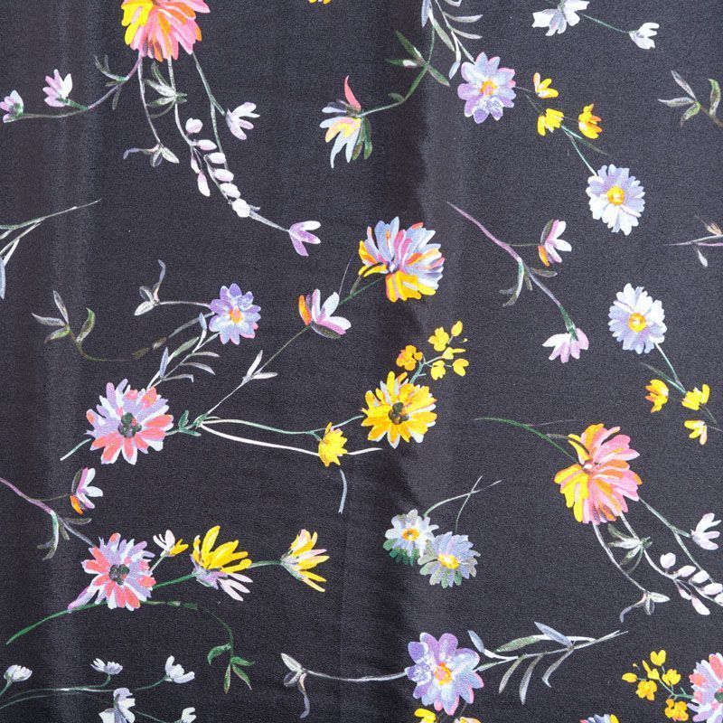 Крепдешин натуральный К24-042 черный принтованный в Ухте