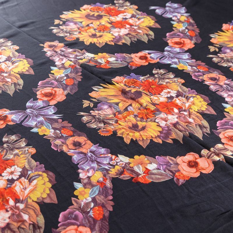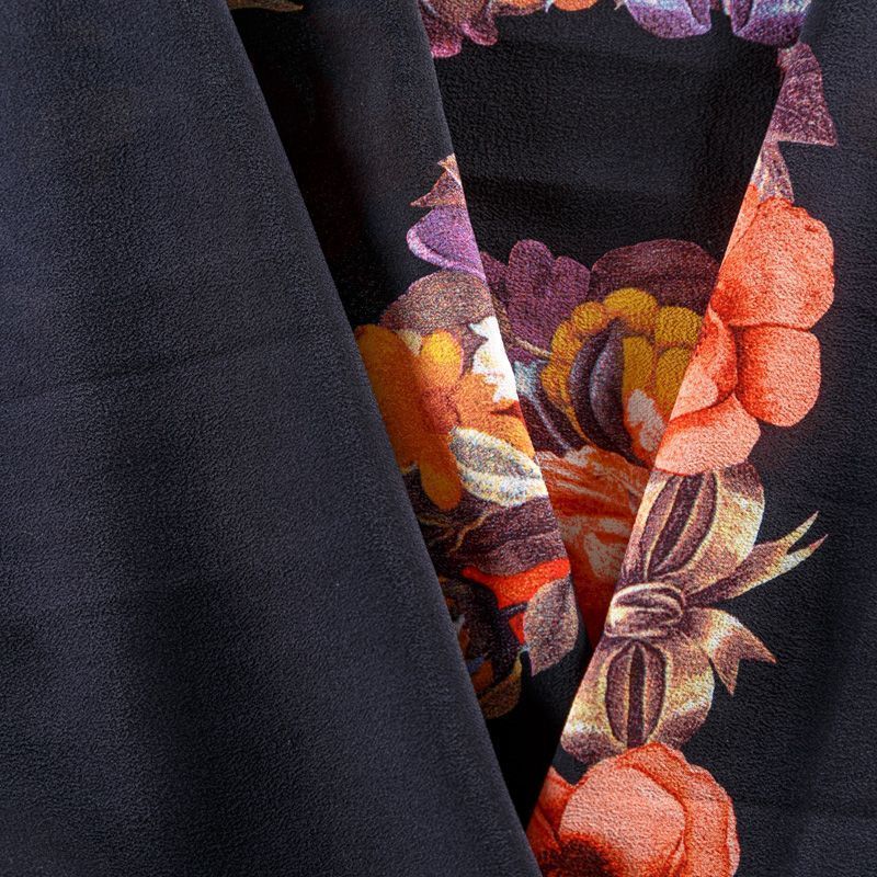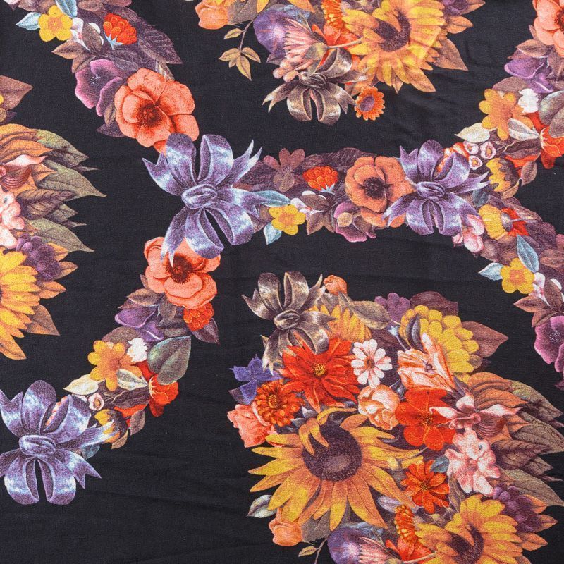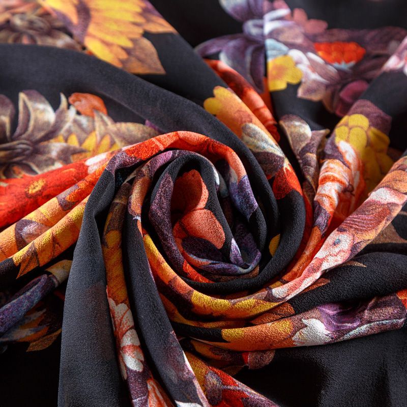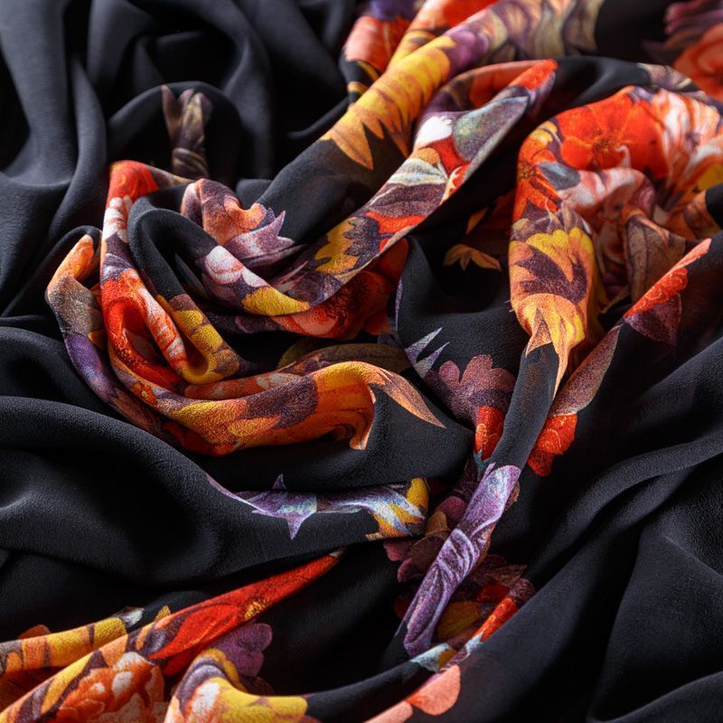 Крепдешин натуральный К29-785 черный принтованный в Ухте