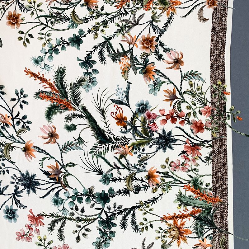 Крепдешин натуральный К32-237 бежево-серый принтованный